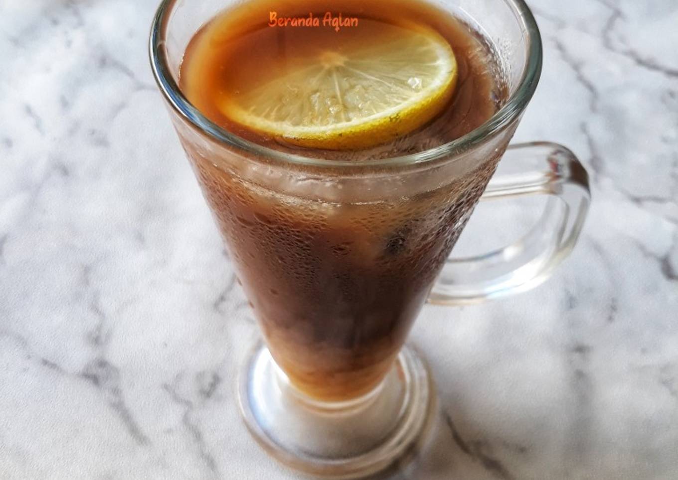 - Kemudian tuang sisa air..beri perasan jeruk lemon. Lalu tambahkan es batu. Aduk rata.