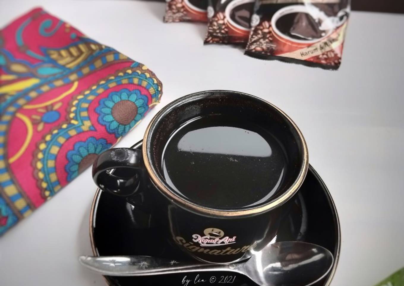 - Tuang kopi gula instan dalam cangkir