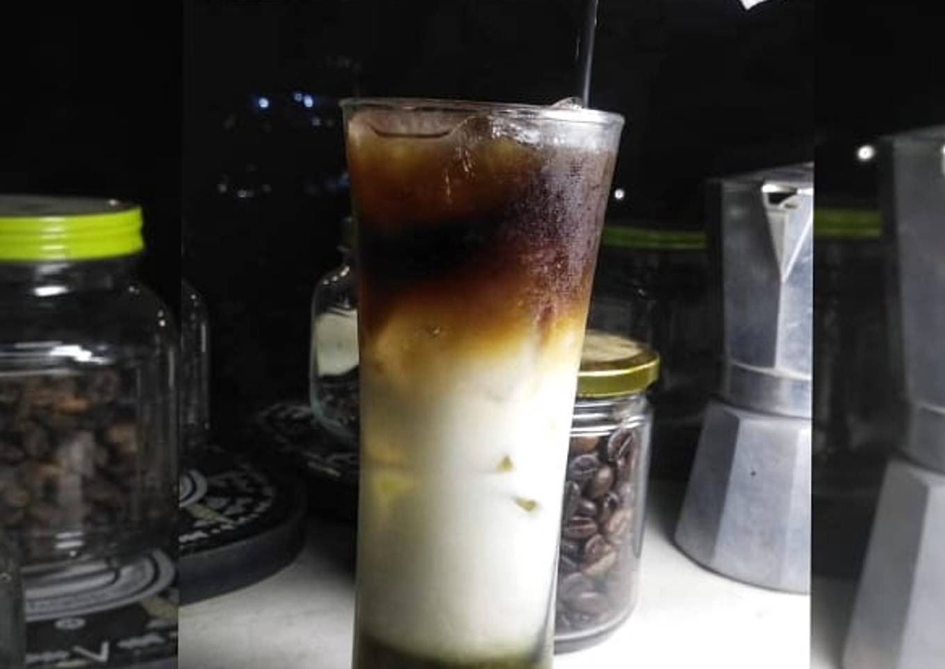 - Kemudian ambil gelas masukkan gula pandan lalu es batu secara perlahan masukkan susu lalu paling atas kopi... Minumnya d aduk dulu semuanya baru deh d seruput... Oiya jika d rasa pandannya punya sedikit GPP bisa tambahkan saja 1 tetes pasta pandan biar dpt warna ijo dan aromanya